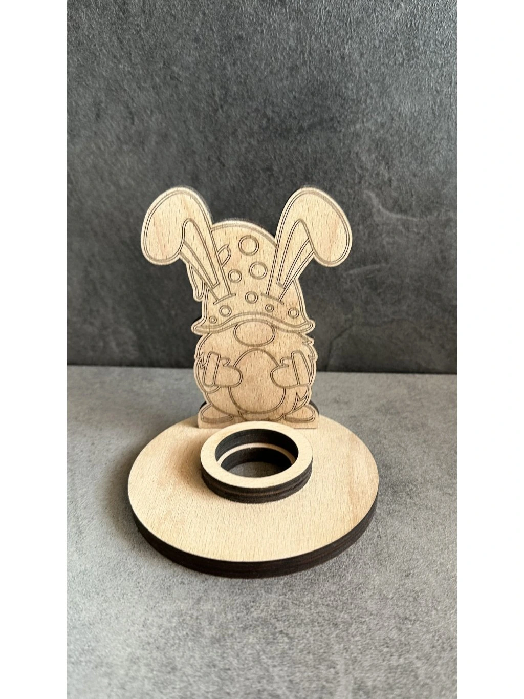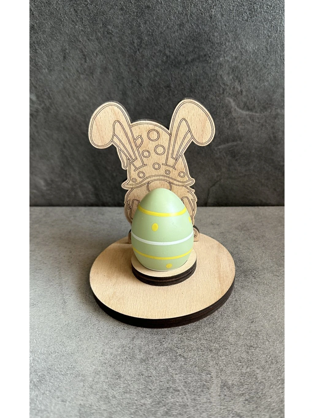 Stojánek je navržen jako dekorativní prvek na velikonoční stůl, parapet či do jarního aranžmá. Po dobarvení získá osobitý charakter a stane se originálním doplňkem sváteční výzdoby.