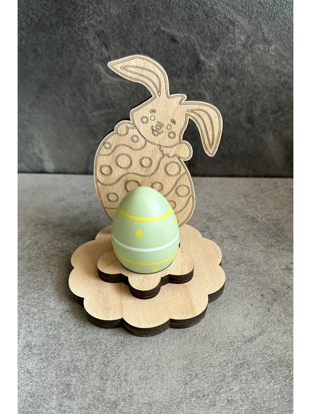 Dřevěný stojánek na jedno vajíčko s gravírovaným motivem ve stylu omalovánky. Vhodný k dozdobení a vytvoření originální velikonoční dekorace.
